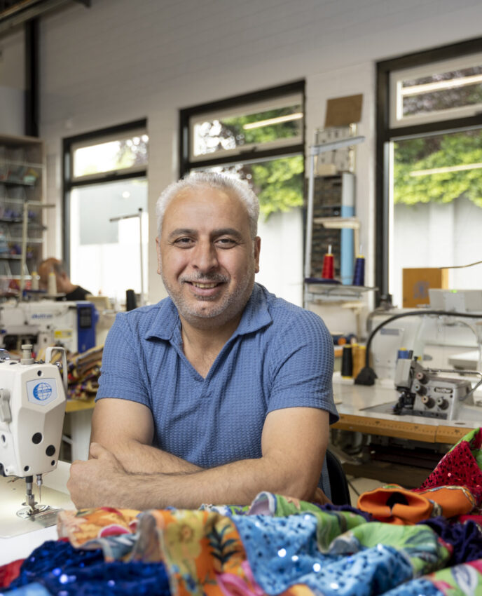 Toen Hesam in 2020 in de gemeente Gennep kwam wonen, begon hij met een inburgeringstraject. “Anderhalf jaar werkte ik twee dagen per week bij Intos en ging ik drie dagdelen naar school,” vertelt hij. “Daarna wilde ik graag meer werken, ik wilde vooruit.” Uiteindelijk kwam hij terecht bij Thetru als kleermaker van carnavalskleding. “Het werk als kleermaker past bij mij, dat deed ik in Syrië ook. Ik vind het hier heel leuk.”